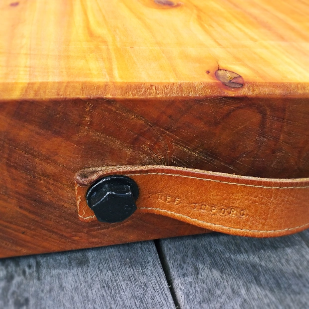 • It can handle any brisket, meat or veggie and is fitted with some real fat leather handles so you can easily pick your block up